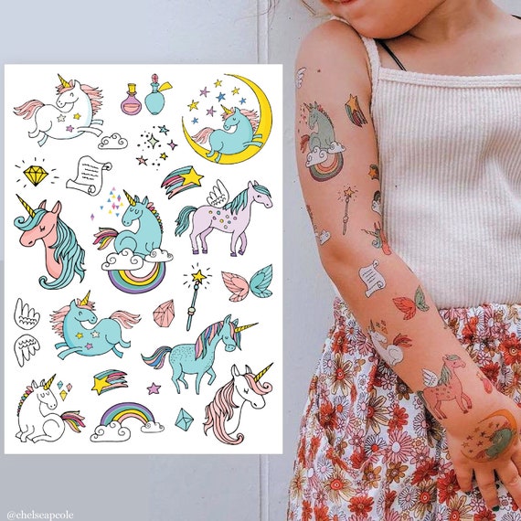 Unicorn Party Temporary Tattoo Transfers Big Set Of 9 Magic Etsy